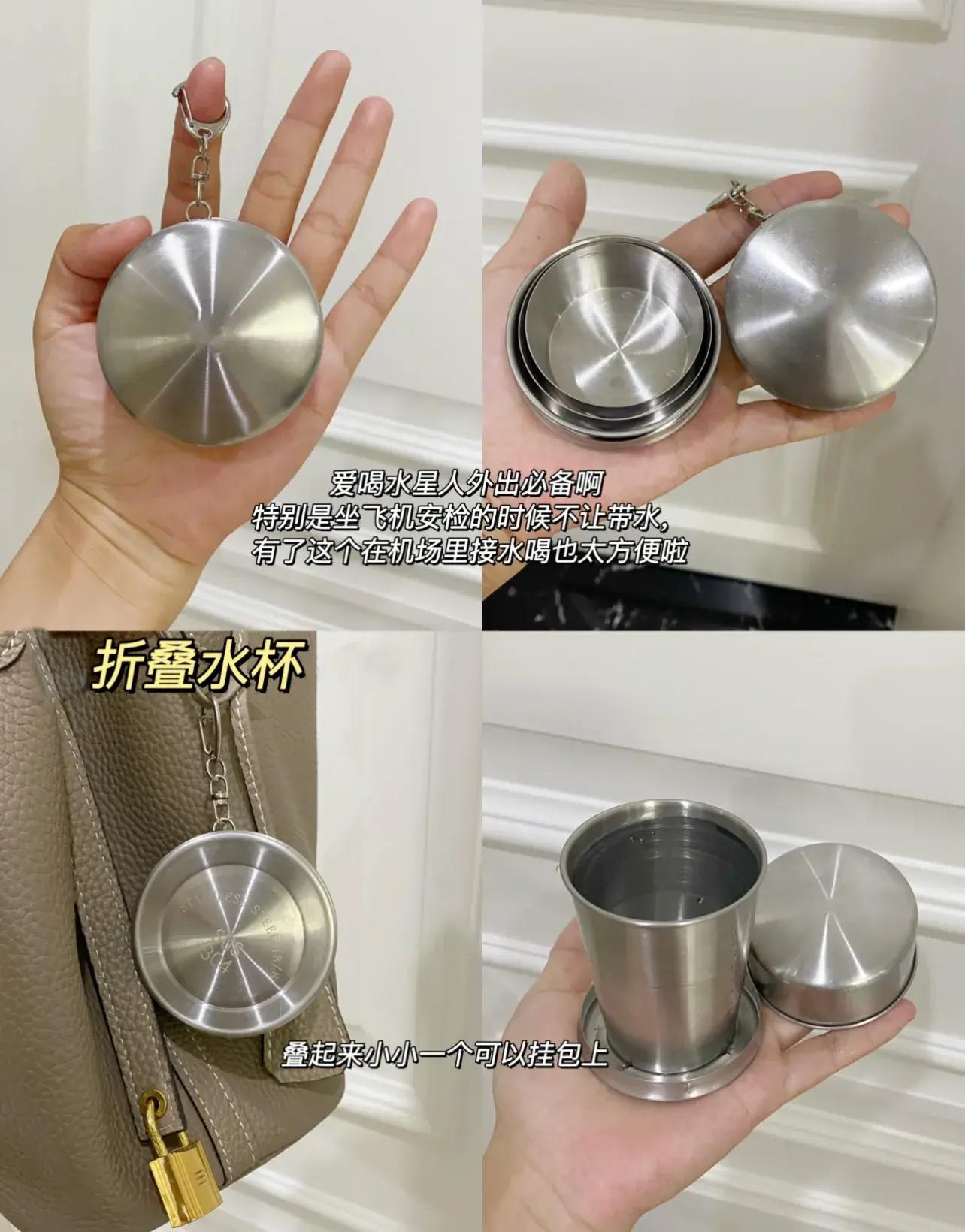 清楚自己的狀況後,再出門時,我把買奶茶變成了帶水杯,給包包上掛個摺疊杯,想喝水時隨時接,不用喝冰,也不佔用包內空間,關鍵掛着也不醜,太適合消費降級+養生的人了。