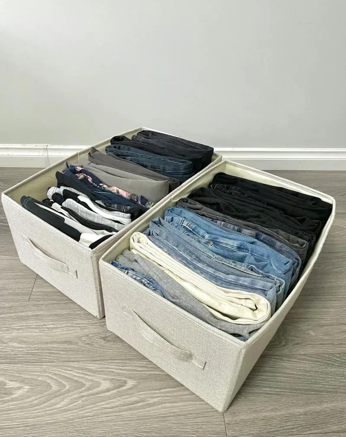 所以,在消費降級後,衣櫃裏我再也沒有用過塑料收納盒,而是選擇了布藝收納盒。