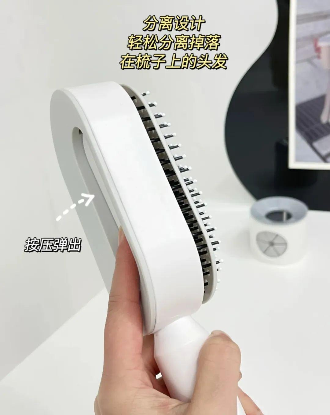 它比普通的氣墊梳,多了一個分離片設計,後面輕輕一按,可以輕鬆分離掛在梳子上的頭髮,使梳子始終保持乾淨的狀態。