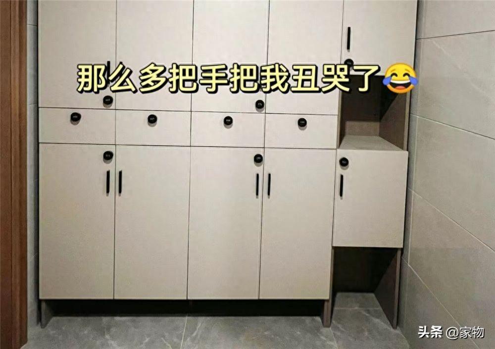 一進門的玄關櫃,就讓人感覺非常的“雷人”,找來的定製測量工人簡直是半吊子,左右兩側留了太大的縫隙就不多說了,櫃子上的門把手,就更是讓人感到無奈,又多又亂又無用。