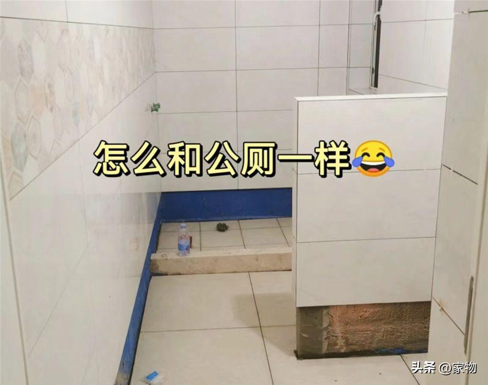 家裏衛生間做的乾溼分離,半牆隔斷完全就是臆造出來的產物,這種裝修風格可以說是生平僅見,在瓷磚搭配的襯托下,就像是一間公廁,怎麼看怎麼彆扭。