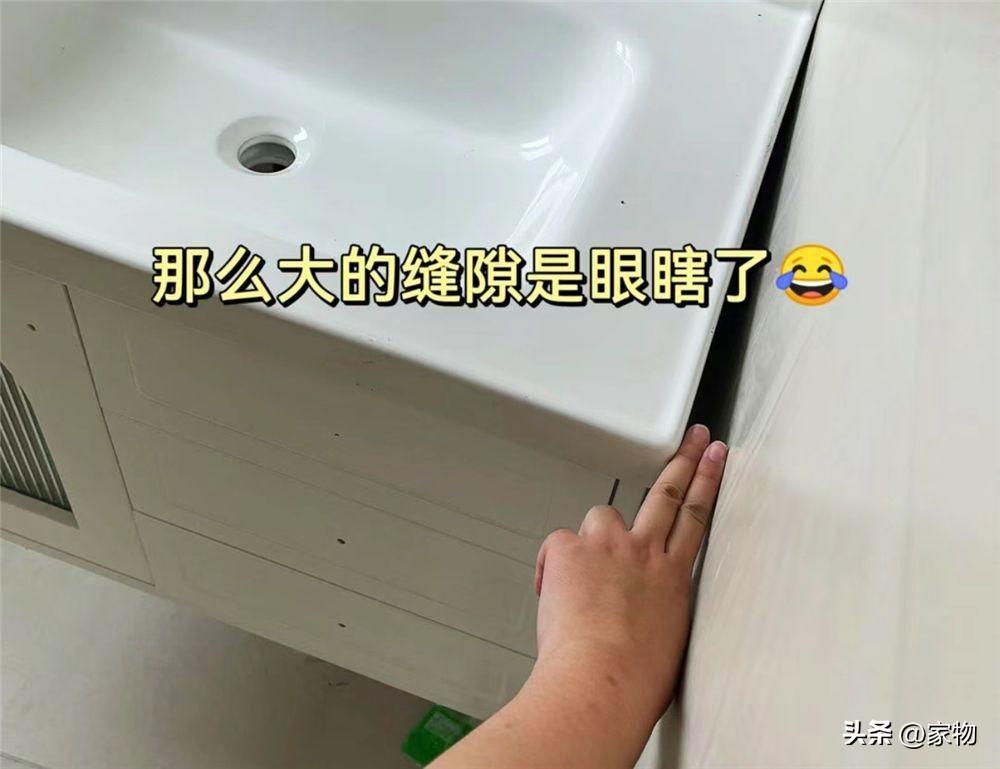 洗手檯、廚房的櫥櫃都有櫃子,或許熟人是想着就安個櫃子有什麼問題?但不知是安裝有問題,還是之前牆面找平這一步壓根沒做,導致後面出現了超大的縫隙,這不拆了重裝都覺得彆扭。