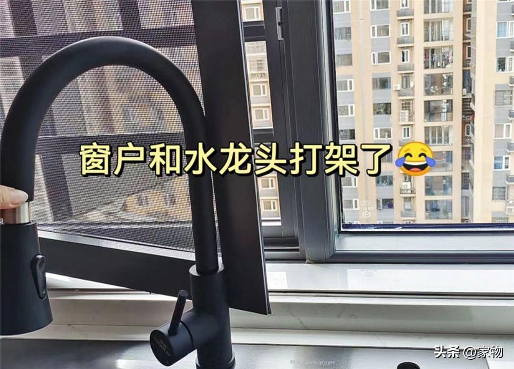 最後就是廚房的水龍頭了,經常會看見它擋住廚房窗戶的情況,這也是在安裝時壓根沒有考慮後期使用問題,經常出現在一些半吊子的裝修師傅身上,唉,還能說什麼呢?