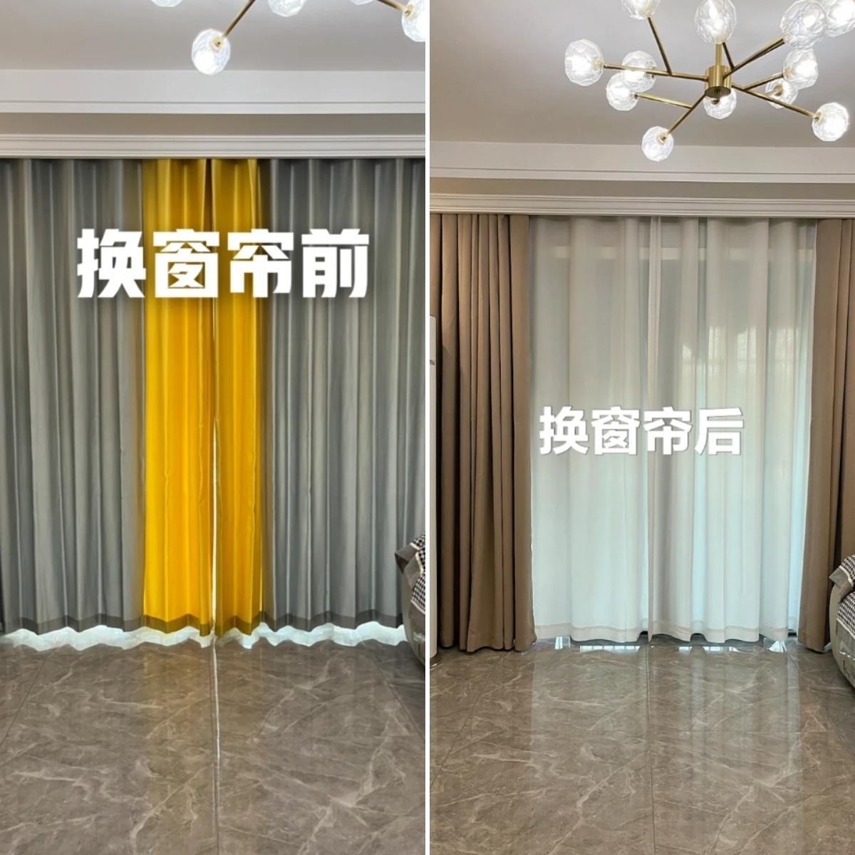 當把拼色窗簾改成純色窗簾之外,室內的整體感受也會提升逼格。看看下面的對比,你就悟了!
