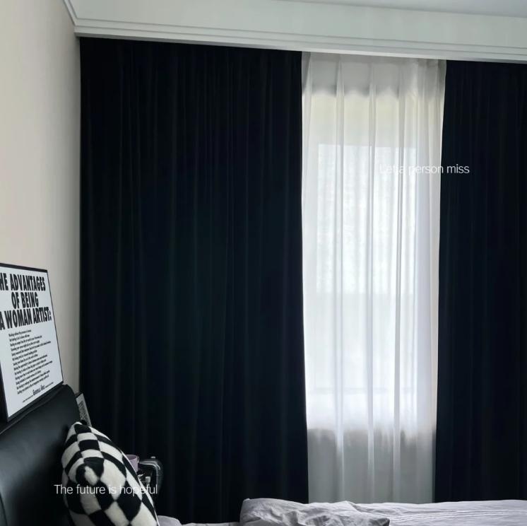 可能很多人不理解,爲啥有人會選擇“黑色窗簾”呢?實際上一開始我也比較懵,後來仔細一想忽然發現了,黑色窗簾,因爲顏色是“黑色”,所以遮光率非常強,即便是做不到遮光率100%,也要99%。這纔是有些人裝黑色窗簾的根本原因。