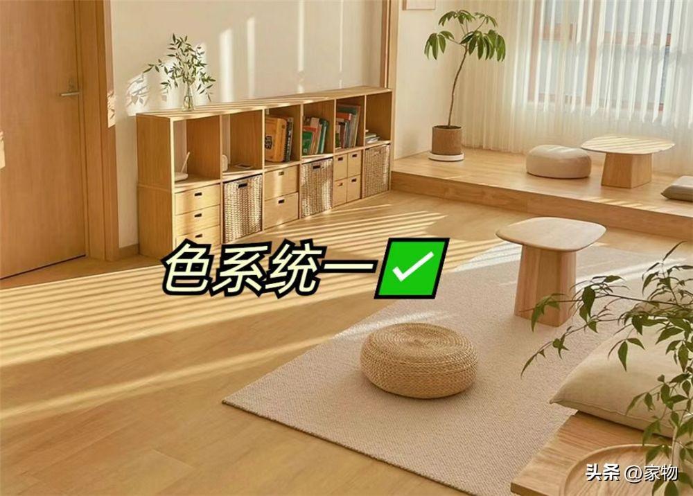 顏色統一,具有相似色系,纔是原木風的重點所在,倒不是說全用原木色讓家變成一個木盒子,但適當用米色、灰色這種或暖或淺的顏色搭配,其實是更合適的。