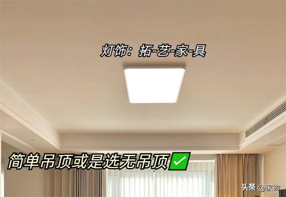 我的建議是吊頂選擇局部吊頂、邊吊或者是乾脆只貼石膏線,再搭配上一個超薄的吸頂燈,整體出來的效果就非常不錯,而且比起做吊頂來說,還要更便宜呢。