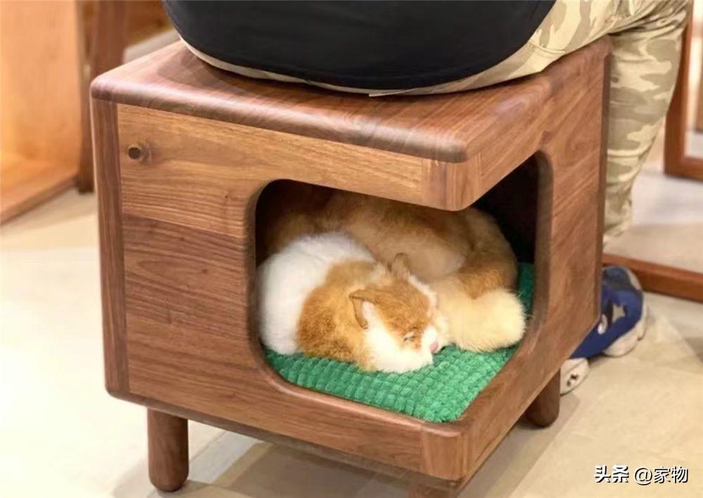 如果想要和貓更親近的話,也可以試試這種下面是貓窩,上面是凳子的小東西,看起來不僅不會破壞家裏的裝修氛圍,還能讓人和貓都保持一種舒適的狀態。