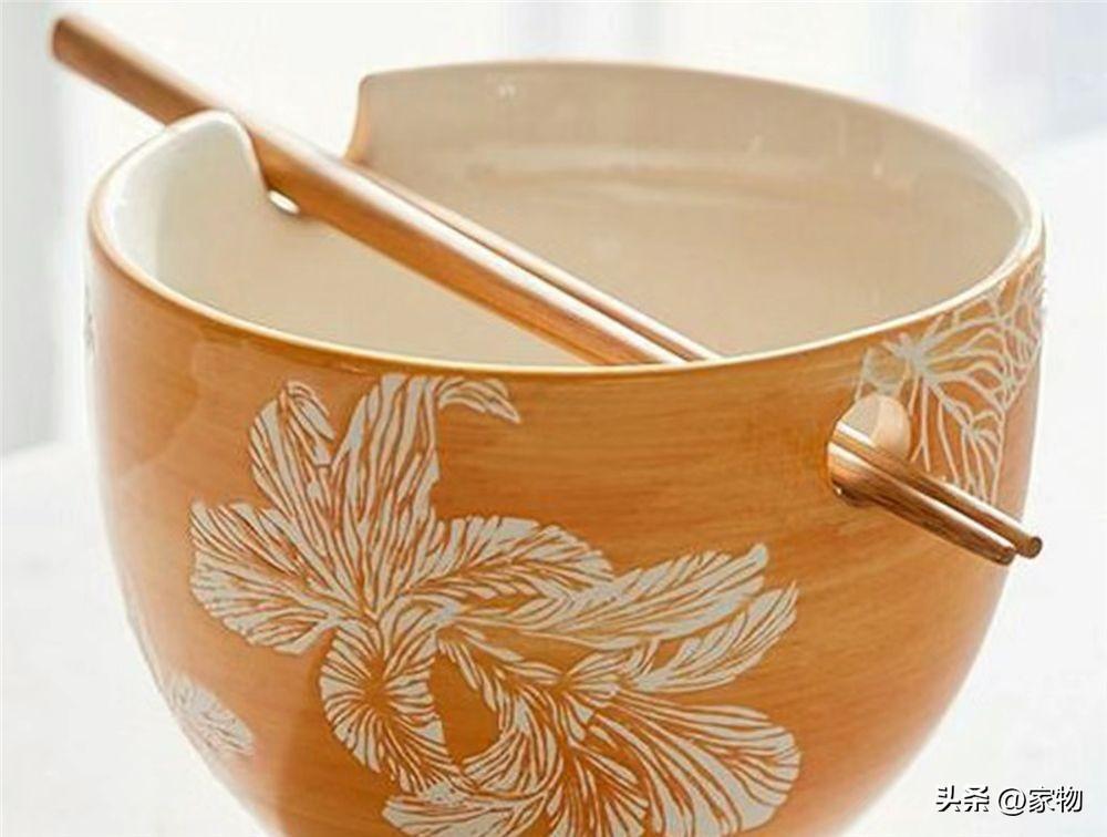 把筷子放到碗上面,經常會滑落,而解決它的問題不是直接放到桌子上,而是在碗的一邊放個凹槽,另一邊開一個小洞,就剛好可以起到放置筷子避免滑落的效果啦。