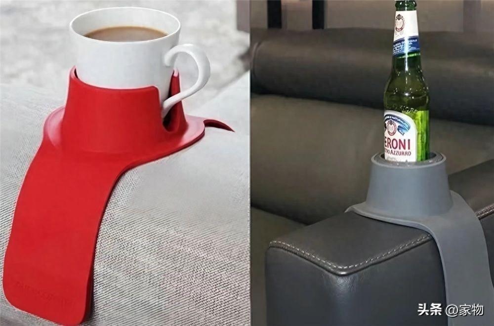 經常會順手在沙發把手上放杯子,很容易倒下灑得到處都是,後來改成了用邊幾,但畢竟離得比較遠,伸手去拿的話麻煩一些,而這種放杯子的扶手小卡子,卻剛好能在方便使用的同時,起到固定杯子的作用。