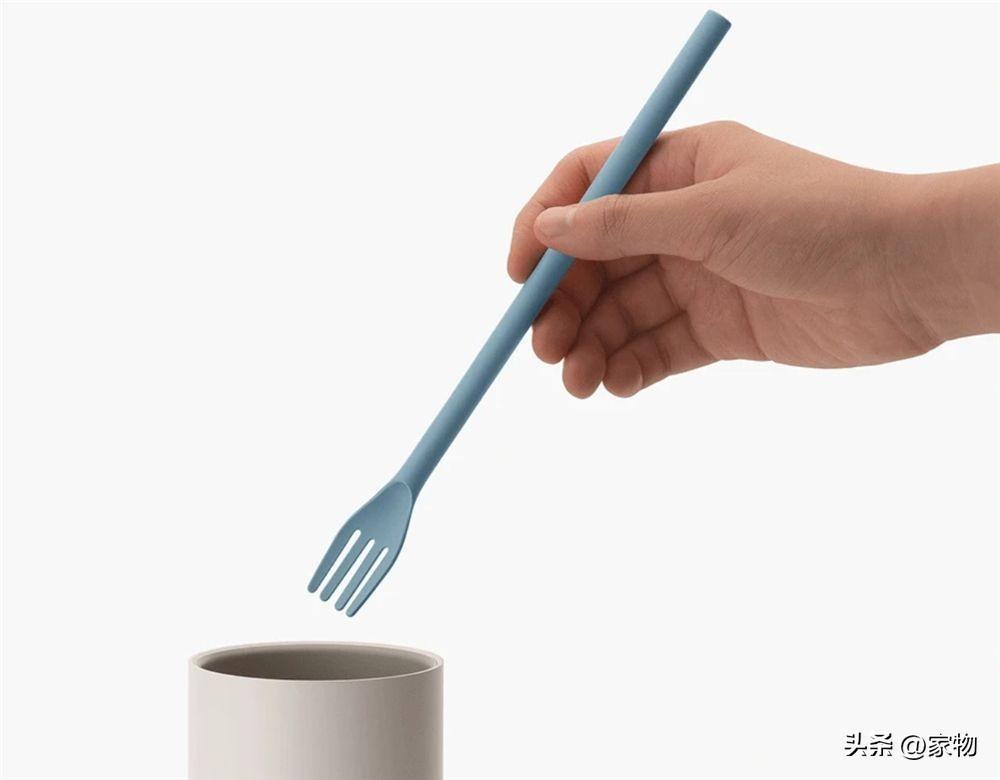 將叉子、攪拌勺、吸管融合成一個小工具,既減輕了家裏收納整理的負擔,同時一個管子就能滿足多種不同情況的使用需求,起碼在我看來是很貼心的設計。