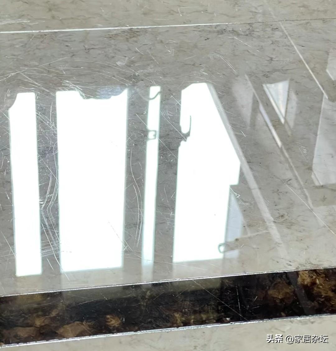 ②、衛生間的瓷磚表面出現了磨痕。可能衛生間的瓷磚瓷磚不耐磨。而客廳的瓷磚,就沒有任何的磨痕。