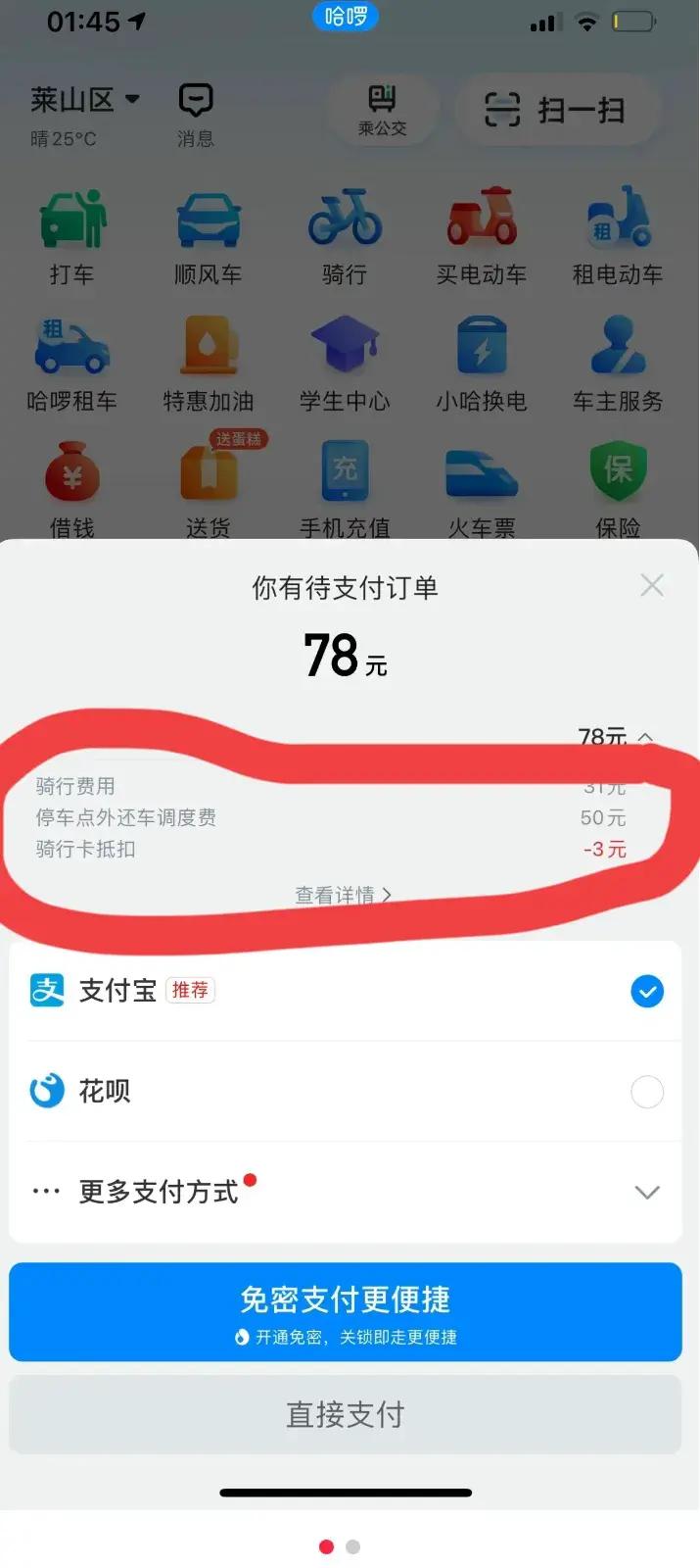 網友@思思不是絲絲:爲了省錢,騎共享單車回家,累的氣喘吁吁不說,結果還騎出了運營範圍,被扣了50塊。