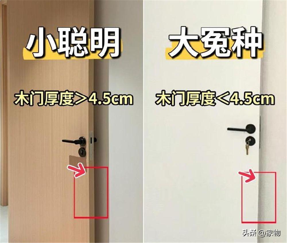 門扇的厚度,爲了實用性考慮,我是建議大家不要去買那種厚度還不到4.5cm的,門扇太薄不僅沒有質感,還會影響保溫以及隔音的性能,最起碼厚度要超過4.5cm。