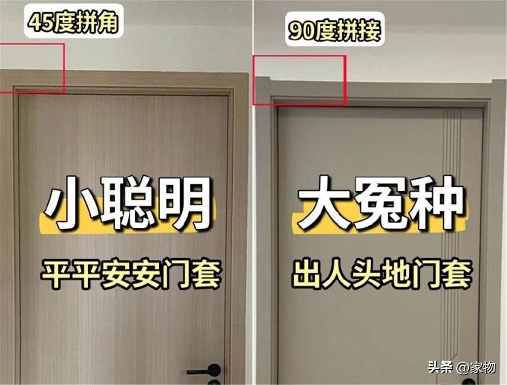 相比之下,門套最好是別用所謂的“出人頭地”門套,這只是商家起的一個好聽的名字,實際上這種門套只是安裝方便,而不是爲了好看或使用,45°拼才更合適。