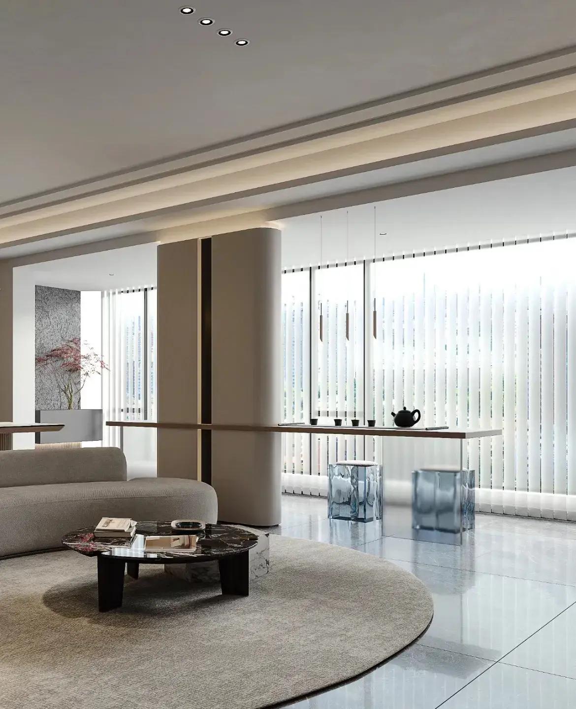 先說頂上的粱,如果是方正邊角,是會有壓抑的感覺,但換成弧形之後,圓潤的吊頂獨特又出彩,還能中和掉家居的棱角,高級感也隨之而來。