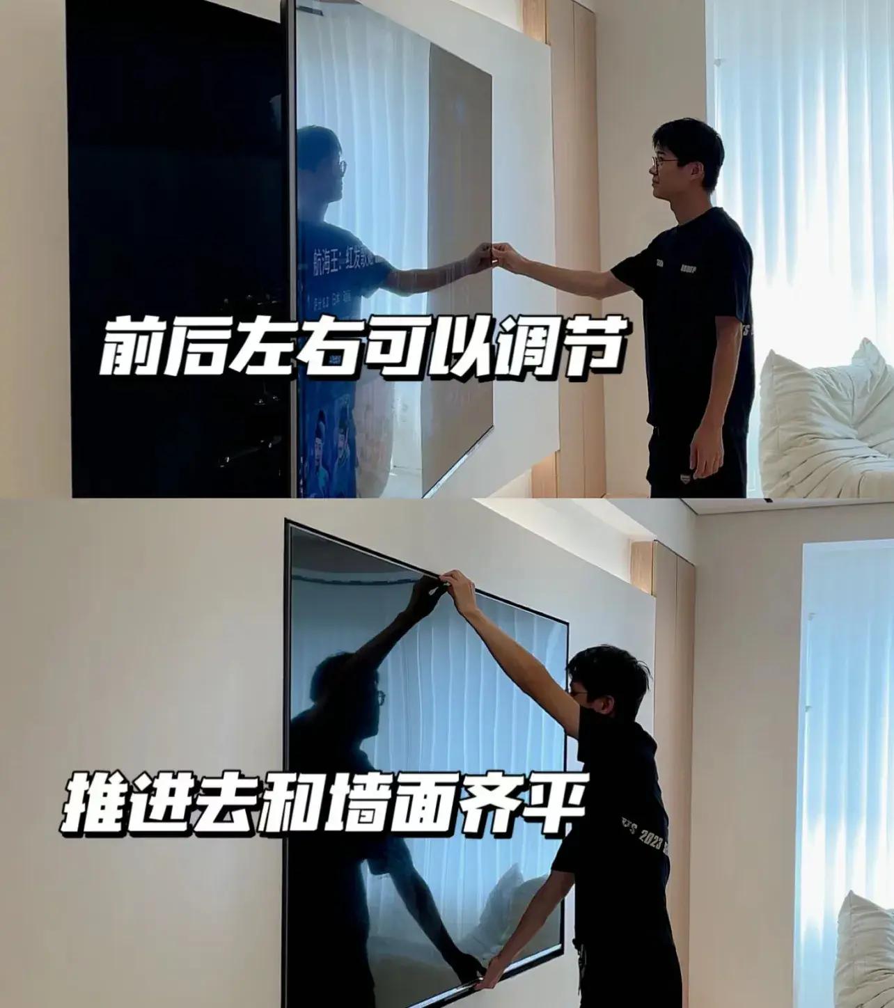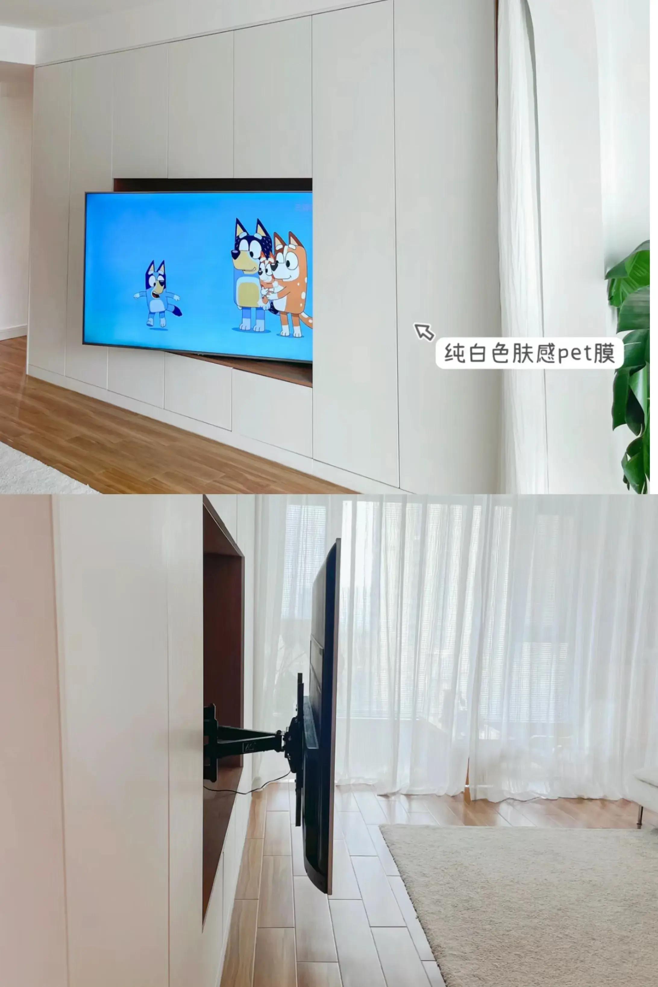 如果再加個可以伸縮旋轉的支架,用的時候拉出來,除了能實現全家無死角看電視,還能多幾分現代科技感。