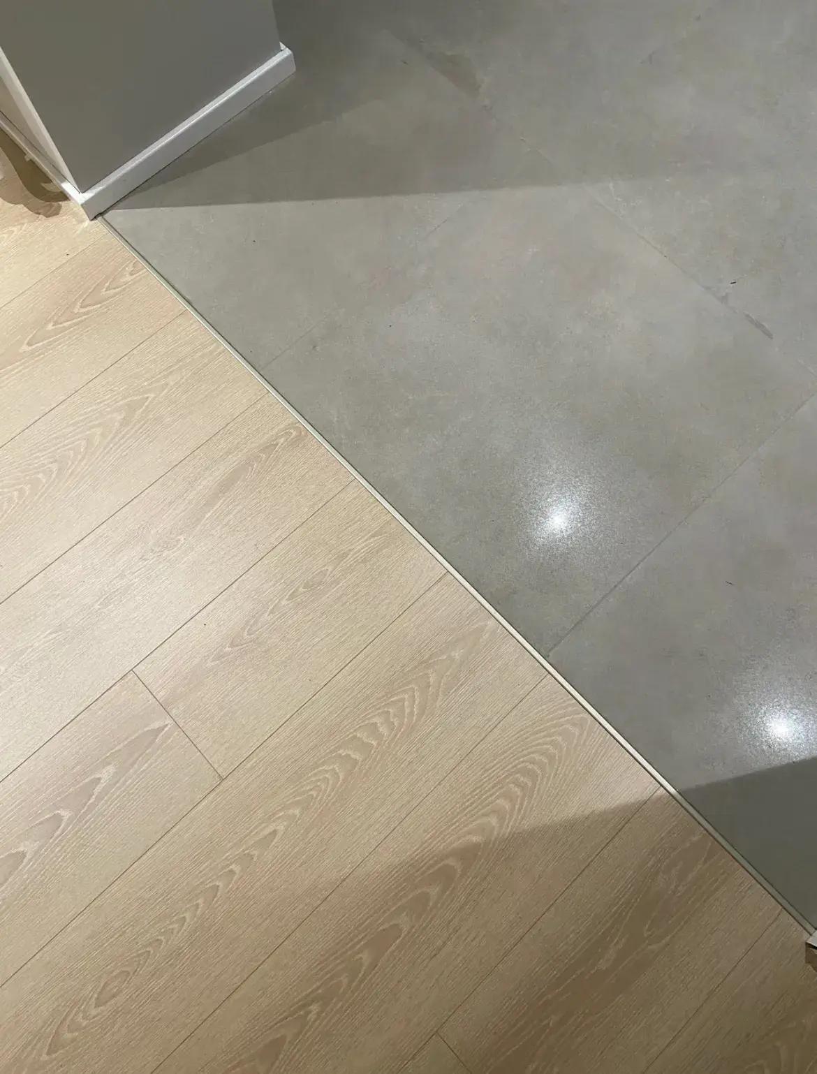 如果早期算準了高度,後期則可以用這種極窄的收口條,或者直接瓷磚或者木地板通鋪,視覺上更簡單大氣。