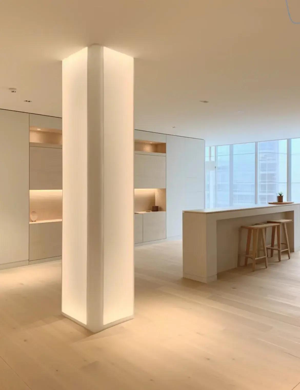 橫在客廳中間的也沒關係,傳統做法顯得笨重,調整成亞克力燈箱住後,加上燈光的渲染,雞肋立馬變出圈。