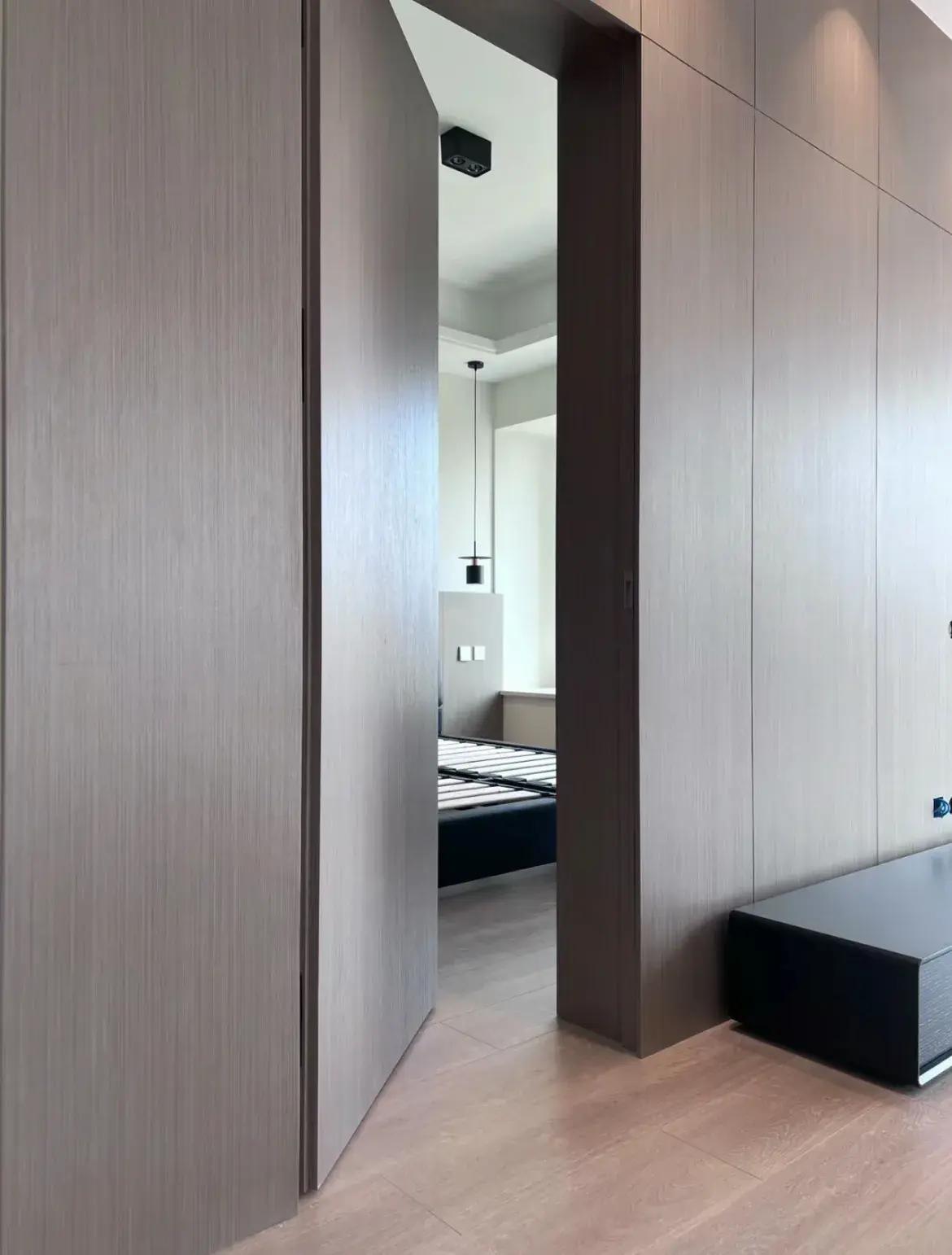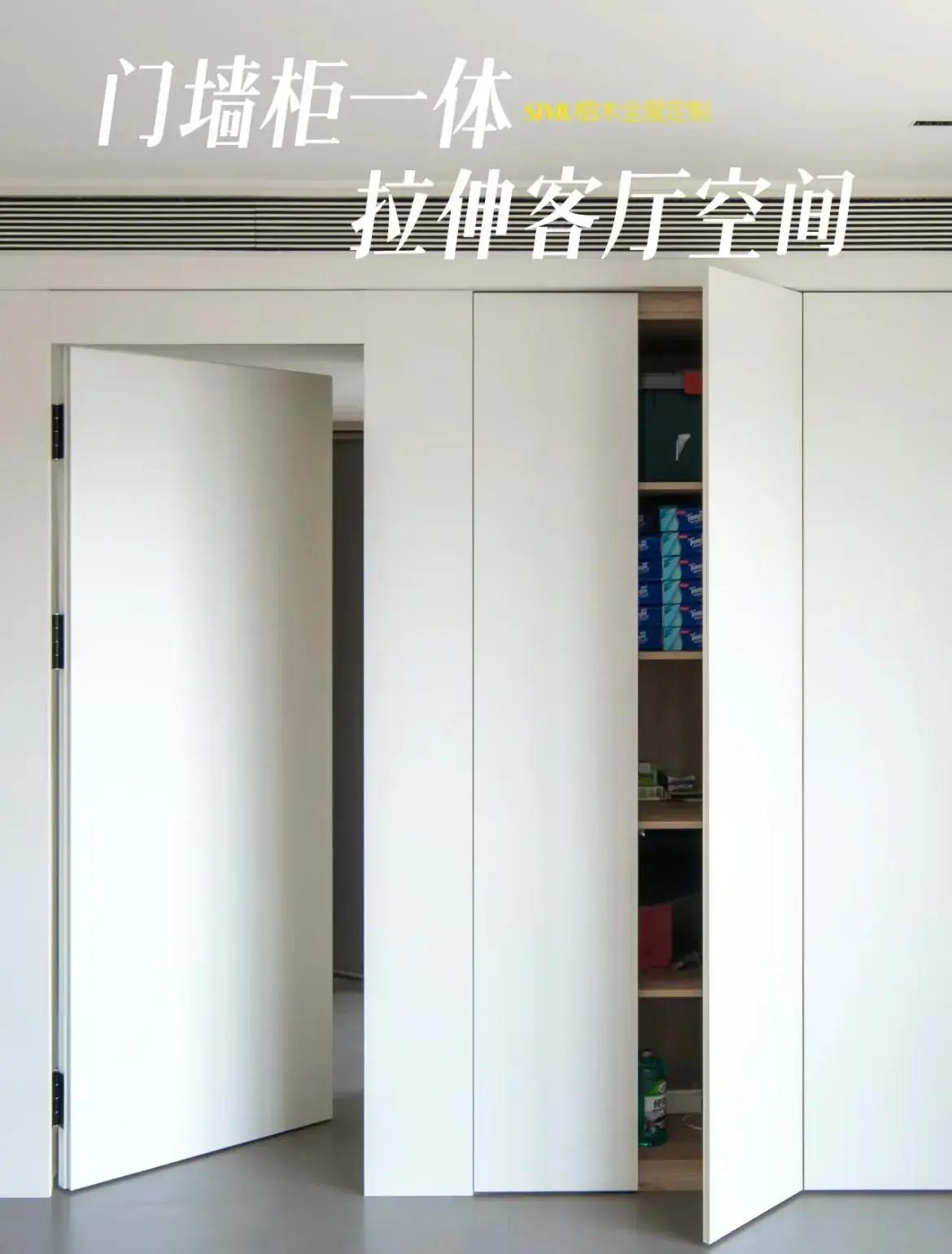 最簡單直接的方式是隱形門,牆與門同色同材質,關上門後,就是一個整體,不仔細看,都發現不了後面藏了間臥室。