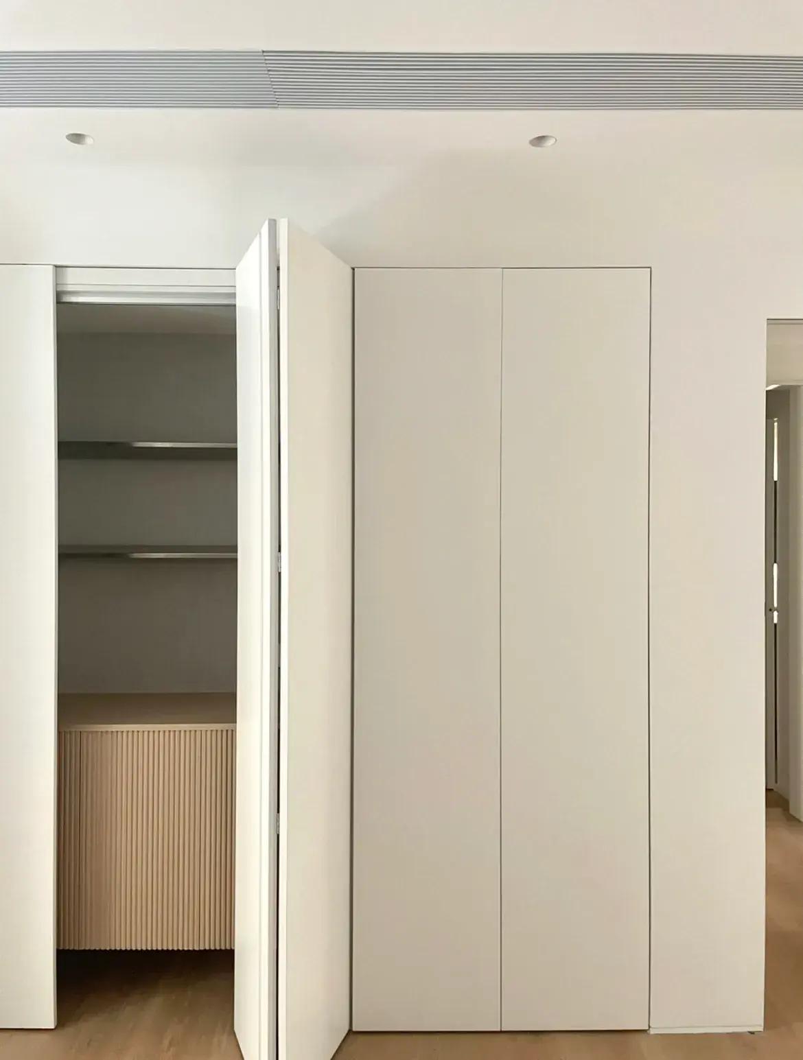或者櫃子旁邊是門的,牆、櫃、門齊平且同色,也可以達到近乎隱形的效果。
