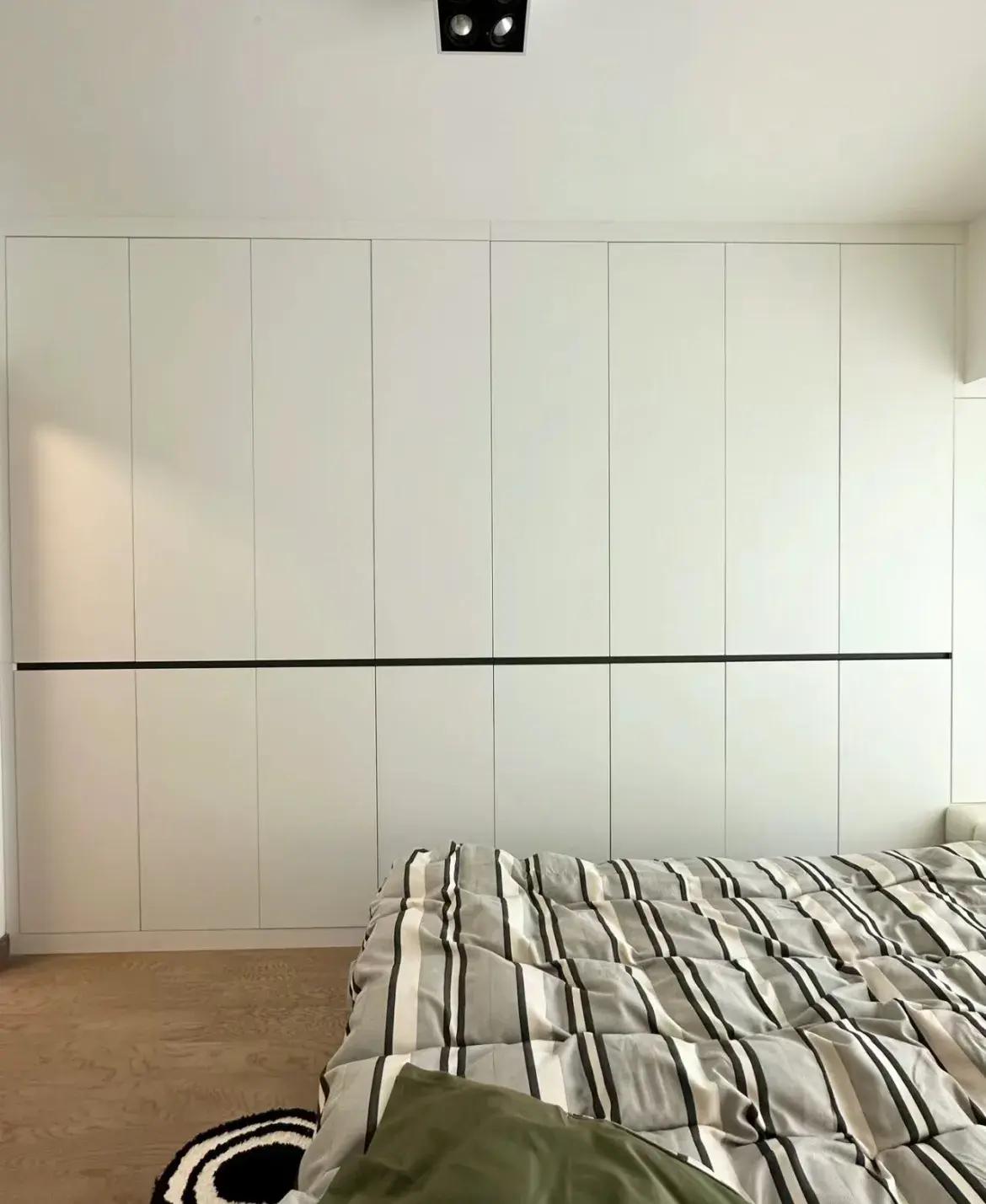 臥室的衣櫃也是如此,整面牆做成衣櫃,完全隱形了衣櫃的存在,又能擁有一個超大容量的衣櫃,一舉雙得,何樂而不爲?