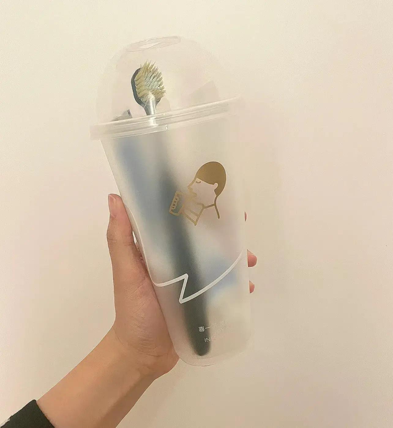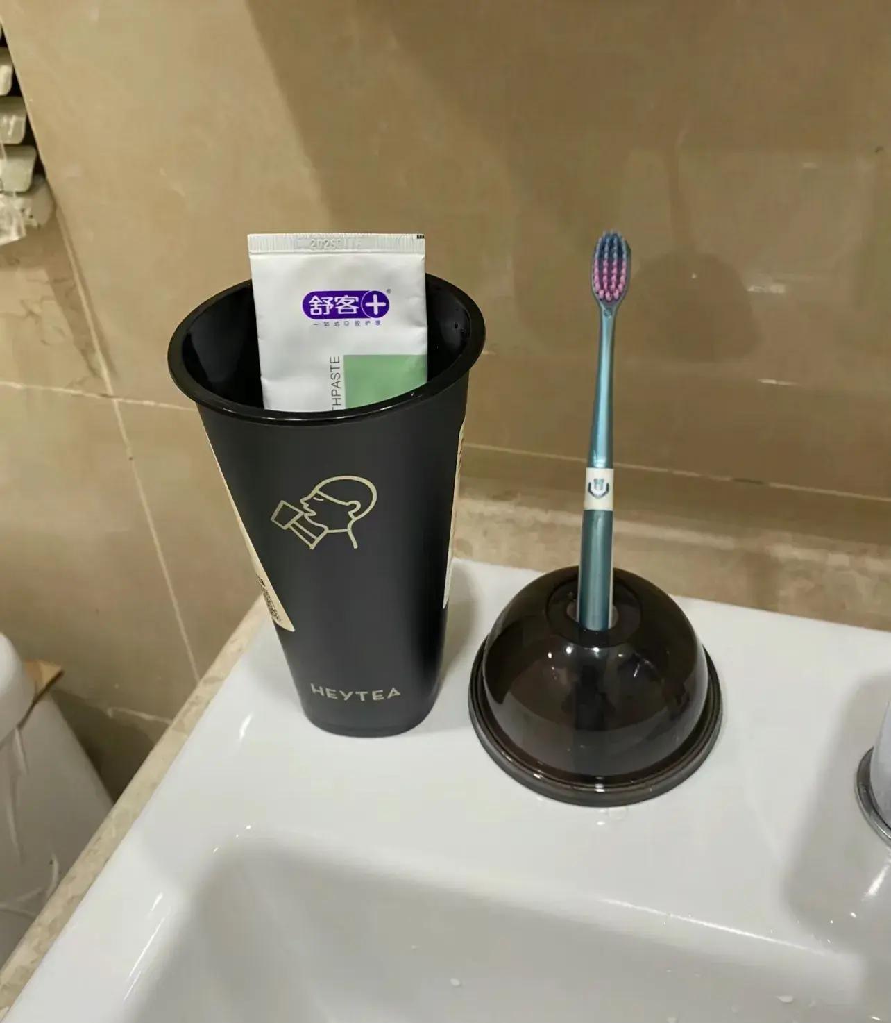 那我就要說,奶茶杯的下一用途——出差收納牙刷、牙膏。