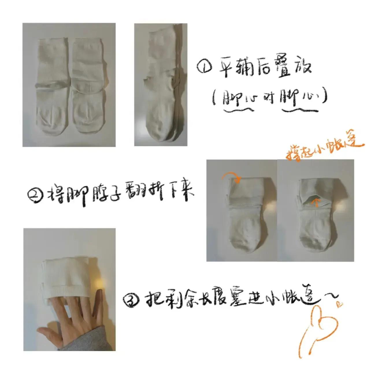 其實互聯網上,早有更合理的襪子疊法,如圖,左折一下,然後右塞進腳脖子。