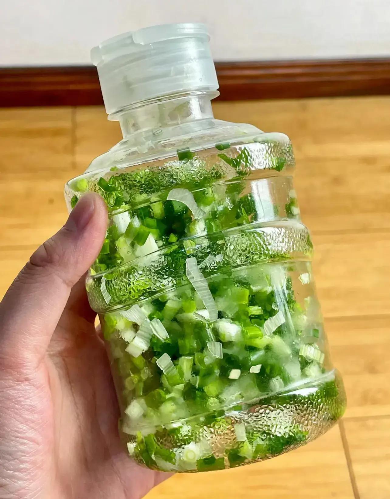 其實很簡單,就是把蔥、蒜苗這些買回家,洗乾淨、瀝乾水,然後就一次性切好,裝進瓶子裏,放進冷凍裏,每次用的時候再往出倒,很方便。