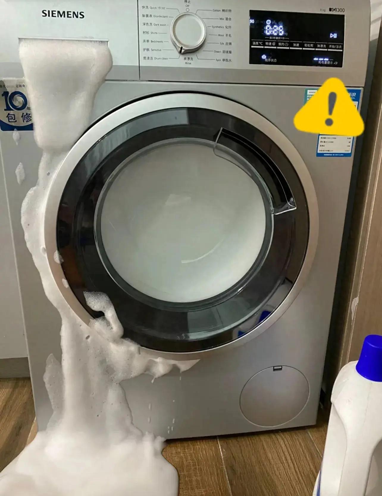 所以,在進行筒自潔程序時,如果加了洗滌劑,會在高溫、高轉速的條件下,催化清潔劑釋放大量且綿密的泡沫(就跟蛋清能打發成蛋白霜的道理一樣)。