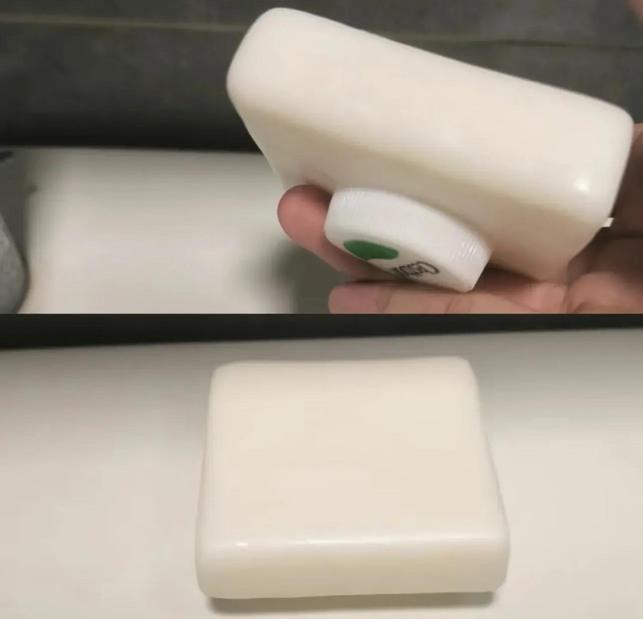 如果是洗手盆旁邊放的香皂,直接一個瓶蓋搞定,比大多數香皂託都好用,又存在感低,又不邋遢,還不怕香皂泡化。