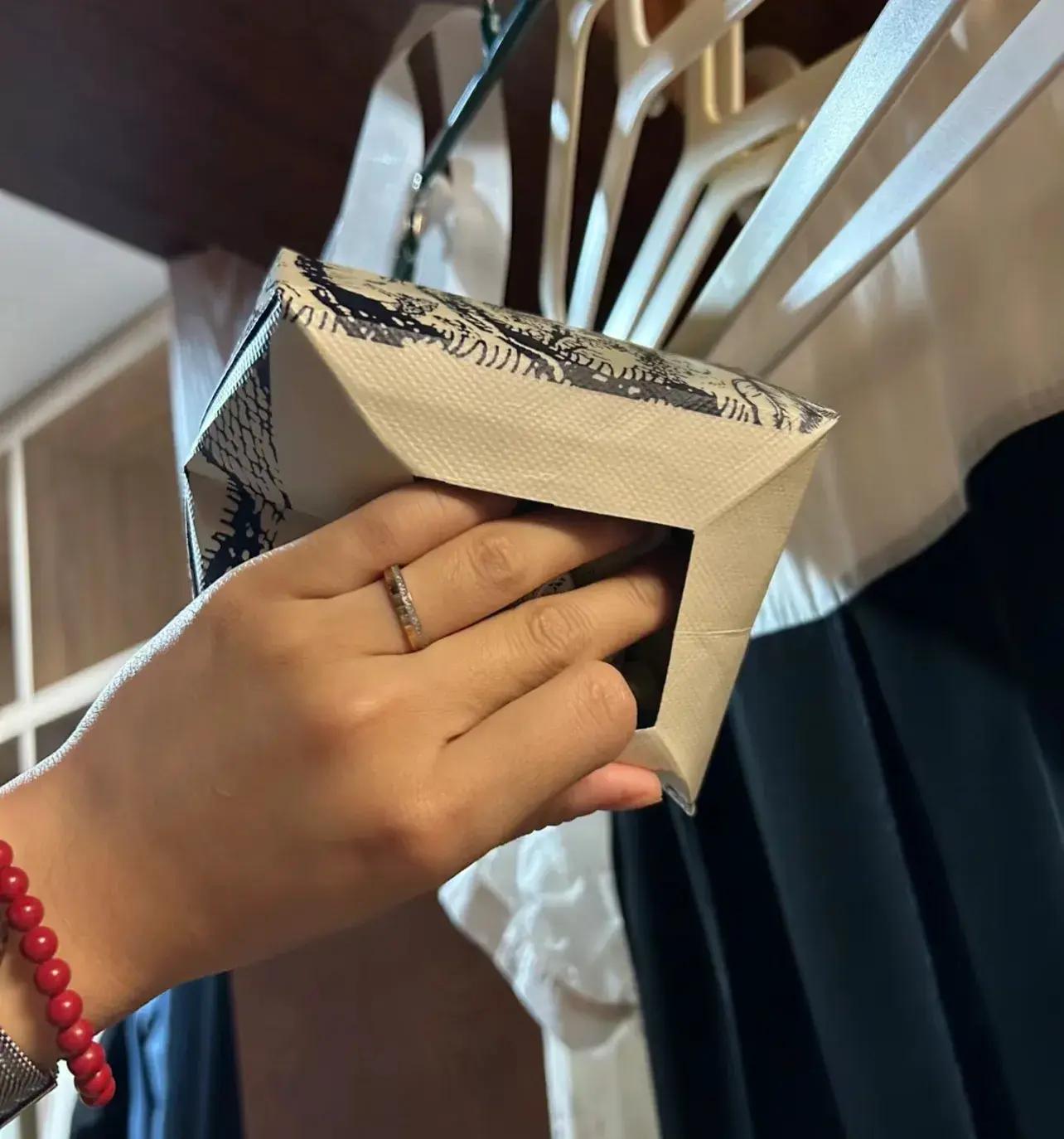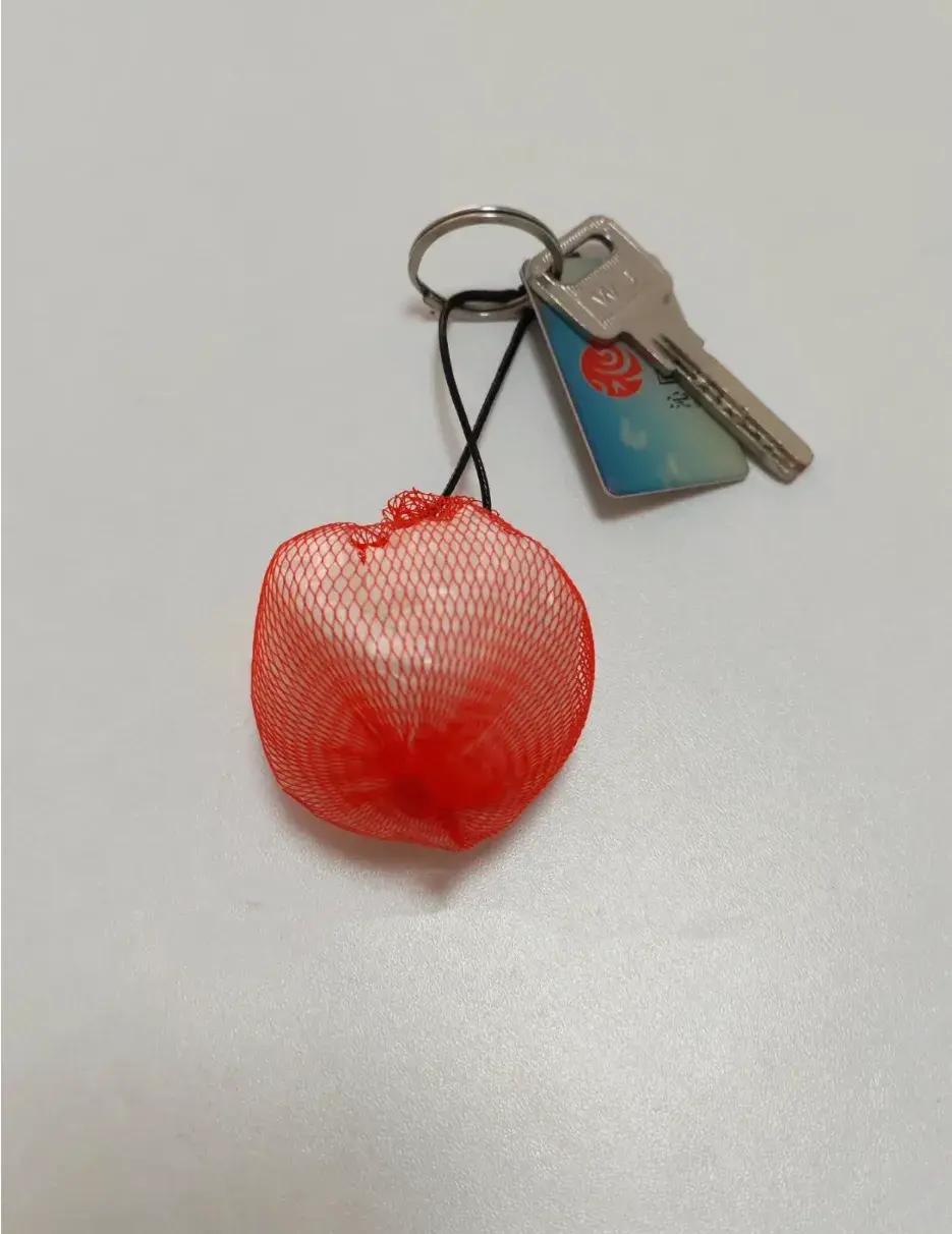 可以把購物袋裝進網兜裏,然後一收緊,就小小一個,往鑰匙上一掛。
