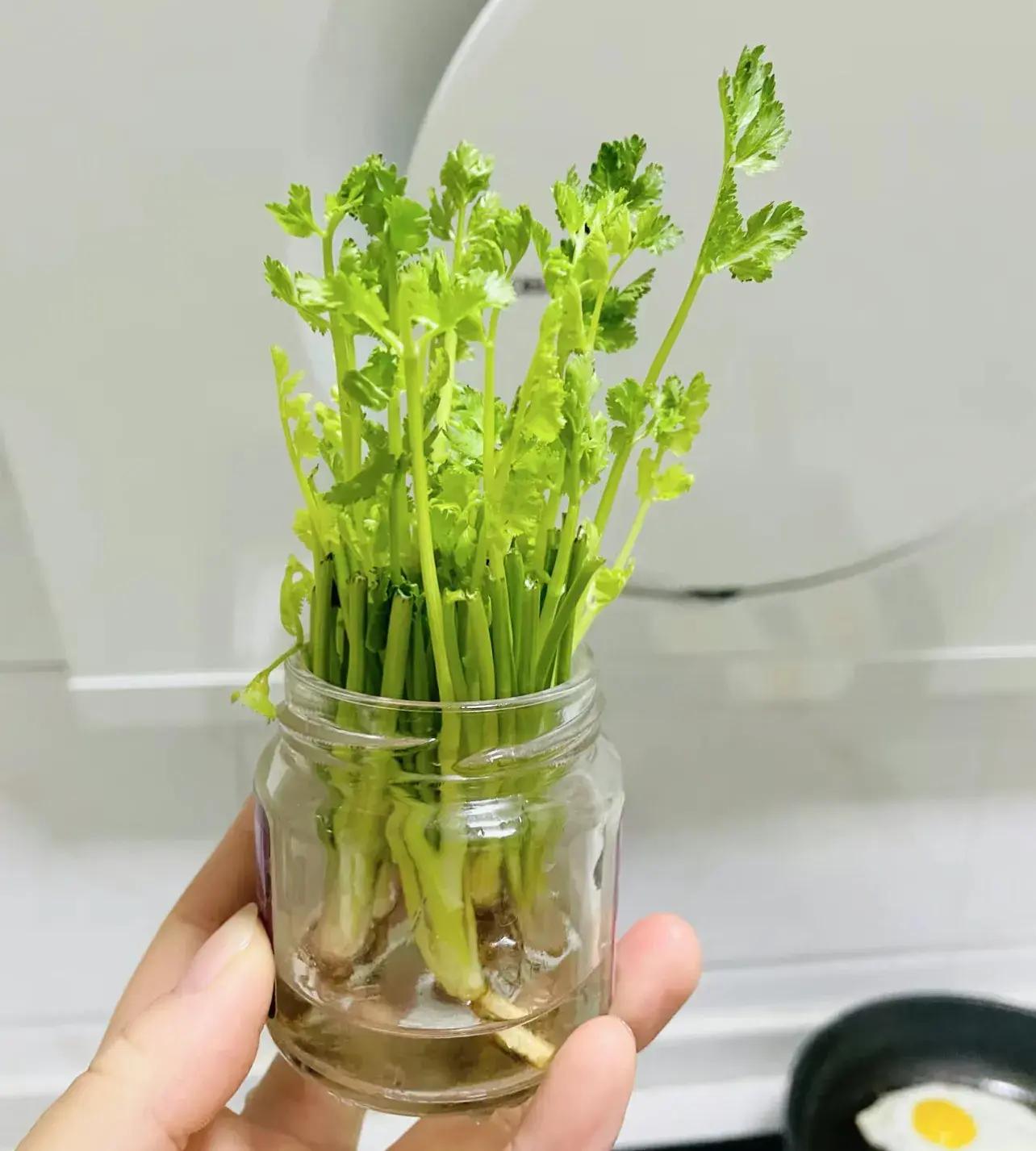 實惠:一頭大蒜,就能收穫幾茬喫不完的蒜苗;一把喫過的香菜,就又能長出新的一茬;