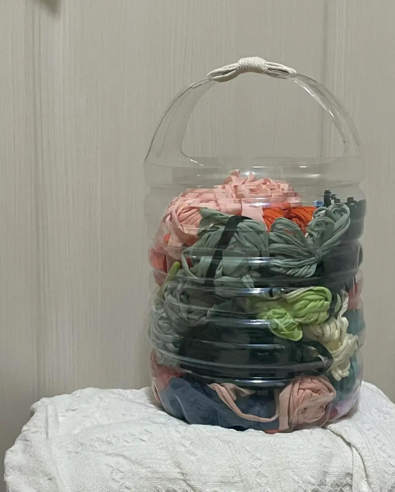 說到大桶礦泉水,我還想到一物盡其用的神技——當髒衣簍用!
