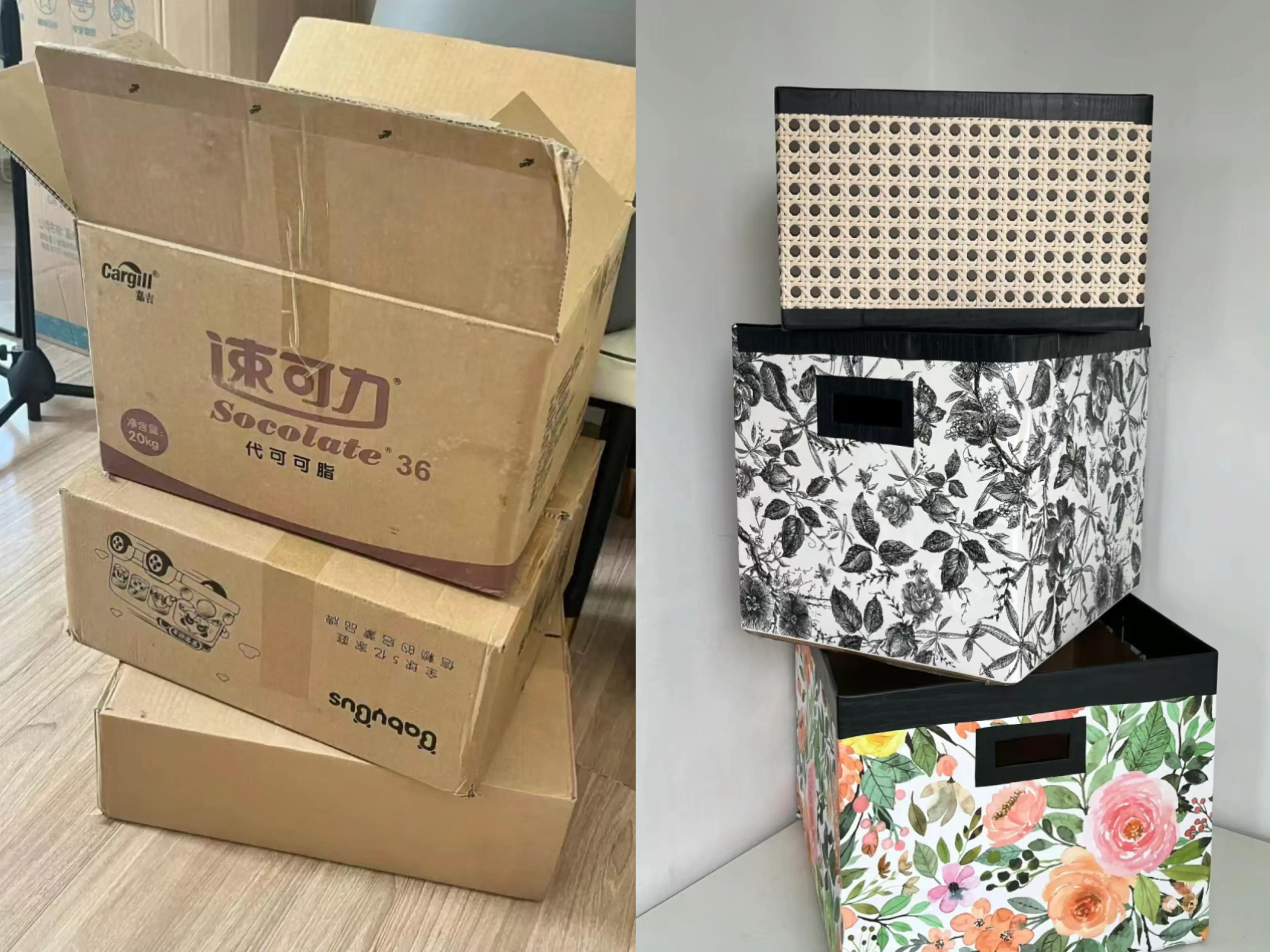 更簡單:奶茶杯、電子產品包裝盒、化妝品盒……這種盒子一般本身就比較精緻,可以直接拿來用。