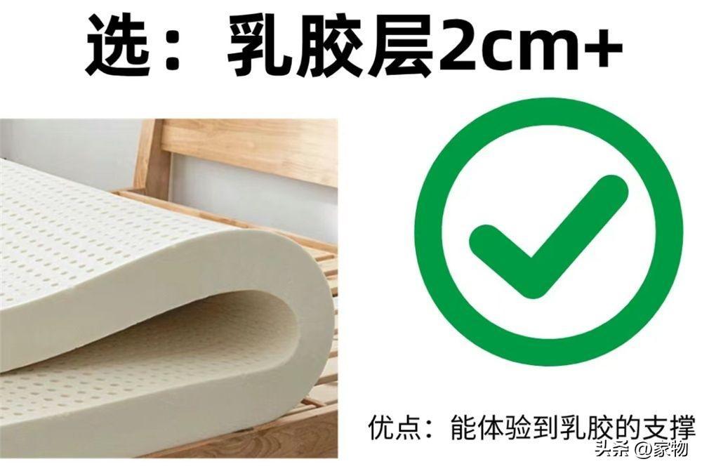 如果要選帶乳膠層的牀墊,我的建議是最低最低不能低於2釐米,想要支撐性和包裹感,就要進一步提升乳膠層的厚度,還是那句話,太薄的乳膠層,不如不買。