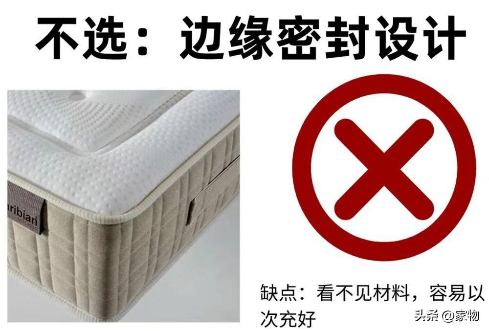 很多邊緣都是密封的牀墊,實際上是對自己的用料沒有信心,將填充和彈簧都藏在密封好的外殼內,普通人買的時候根本不能清晰瞭解到內部的用料。