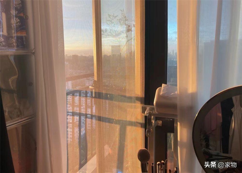 有趣的是,家裏不僅有個不到1㎡的露天陽臺,還有客廳中的窗戶和飄窗,靠近電視櫃的位置是一扇窄窄的落地窗,從這裏可以看到窗外的景色,另一邊的飄窗就更是尷尬。