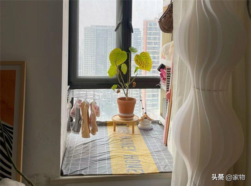 飄窗的位置,被她做成了小小的休閒區,放上綠植鋪上墊子之後,既可以晾曬襪子和小件衣物,又可以坐在這裏喝喝茶、聊聊天,個人感覺還是非常舒適的。