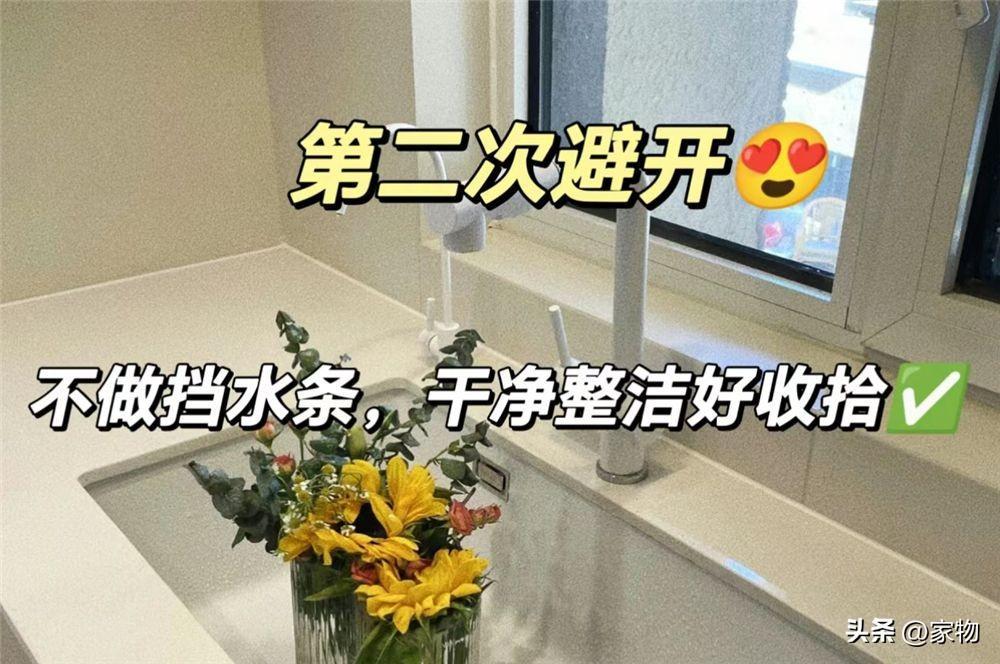 最後,廚房做櫥櫃的時候,要和師傅提前說好不做擋水條,擋水條本身其實沒有多大作用,上面的玻璃膠還是會隨着時間延長變髒發黴,還不如選個好點的玻璃膠,去掉擋水條,相當於少了兩個需要清潔的折角,檯面還大了些。