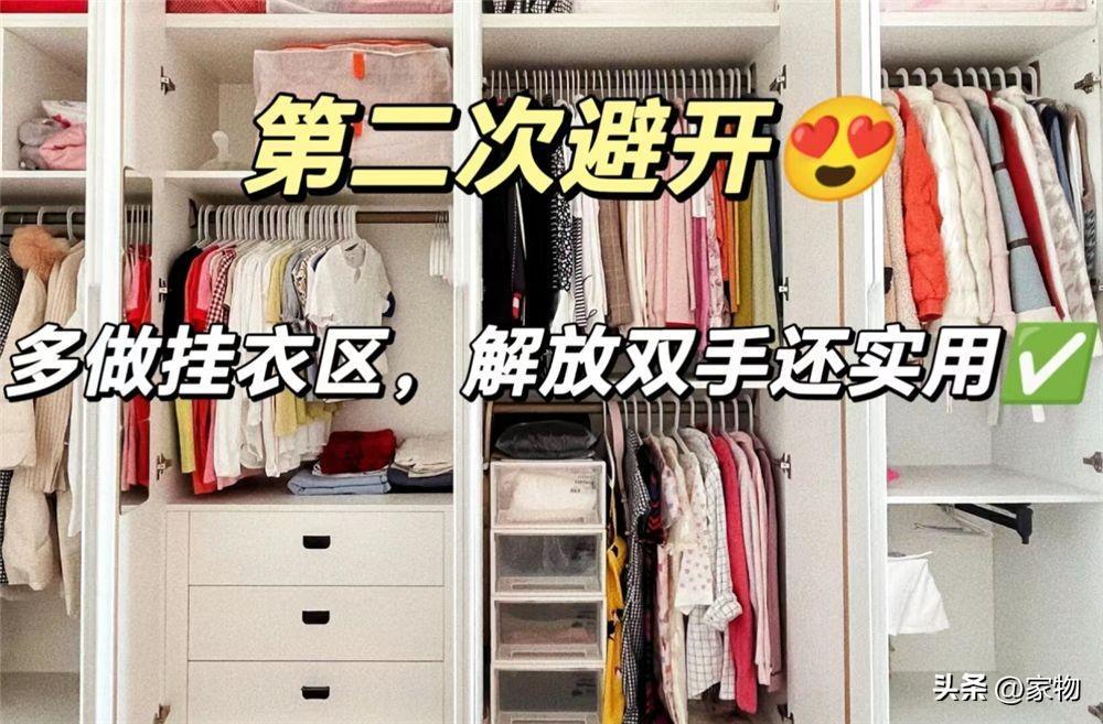 爲了整潔,也爲了方便,衣櫃裏最好還算是多做掛衣區,我家做了N個掛衣區以後,掛衣服和拿衣服都別提多舒服了,衣櫃裏一開門團成一片的情況也很少見了。