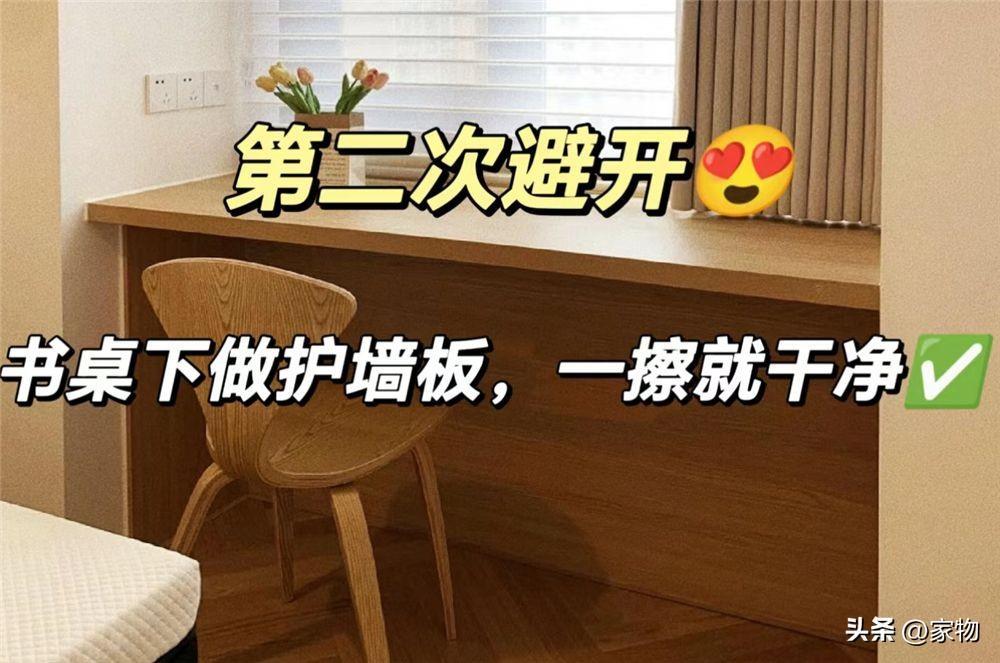 如果不做定製書桌做成品書桌,也可以在預留的地方讓定製廠家做塊護牆板,沒多少錢,屬於是花小錢辦大事的細節裝修啦。