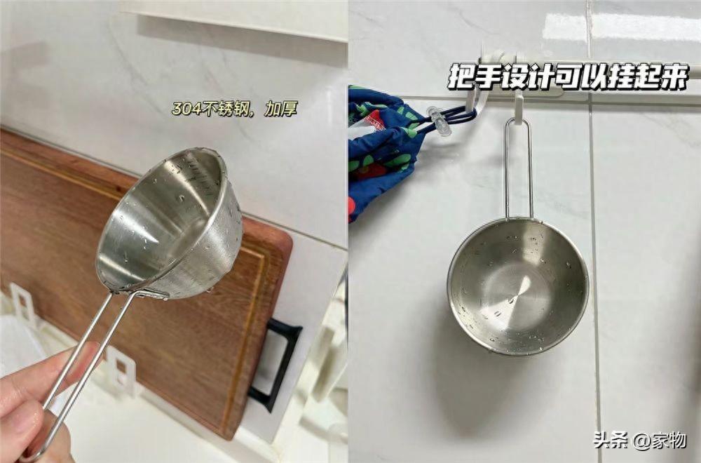 這種帶手柄的不鏽鋼小碗,是真像一個迷你的小奶鍋,可以放到電陶爐上用,本身就是加厚的不鏽鋼,穩定耐用性都不錯,而環繞形的把手,也方便將其掛起來,用着真的很方便。