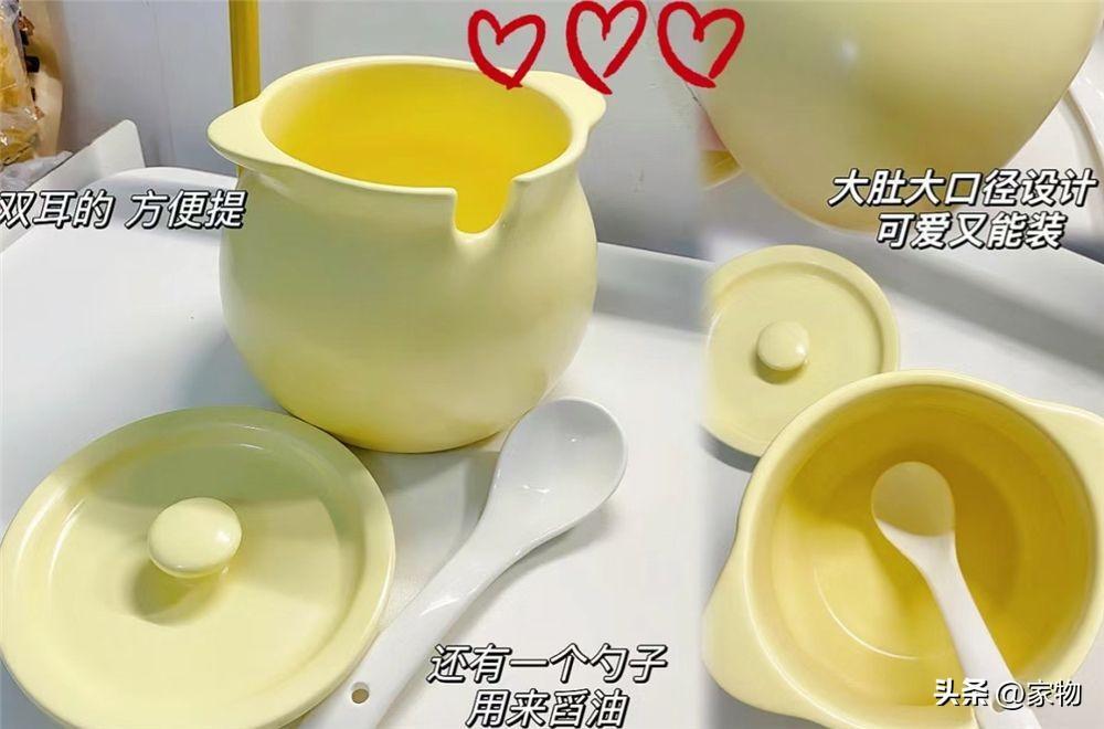 豬油罐本身是雙耳的,提拿起來更穩一些,不容易掉,和很多鹽罐味精罐一樣,還有一個小小的豁口,勺子可以一直放在裏面,蓋上蓋子也有防塵防潮的效果。