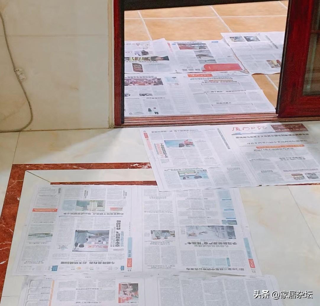 ①、對於除溼的材料,大家可以在家裏找一下。家裏舊報紙,其實舊紙張都可以。攤鋪在地上就可以了,除溼後晾乾,又可以反覆使用。