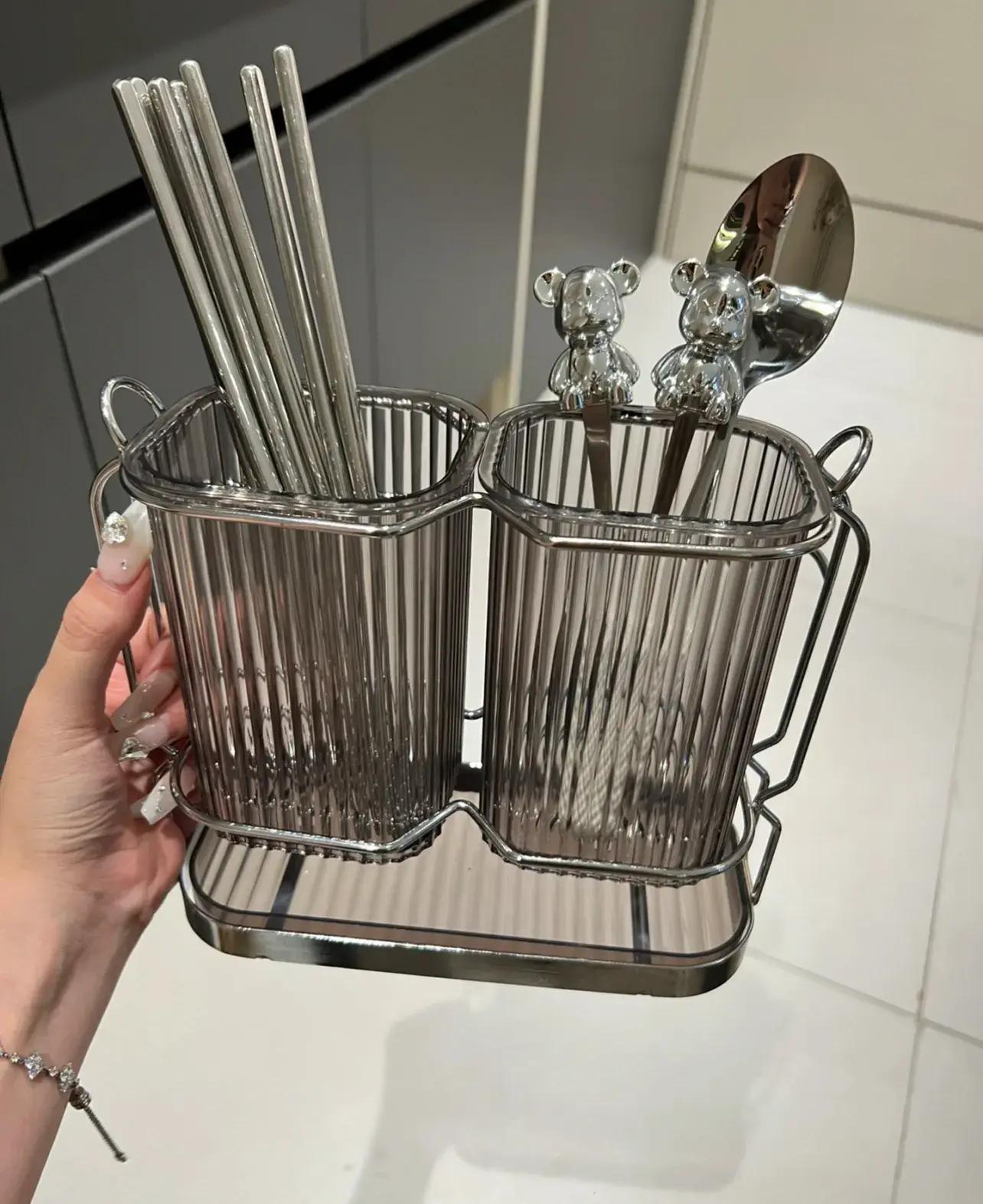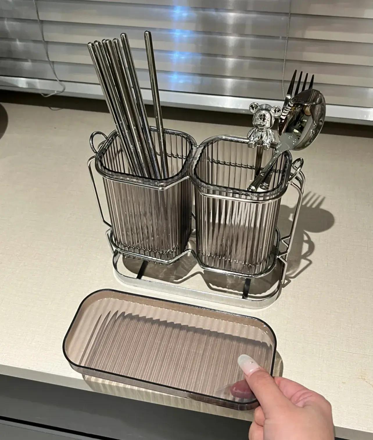 首先,它底部帶瀝水孔和託水盤,是一個合格堪用的筷子筒;
