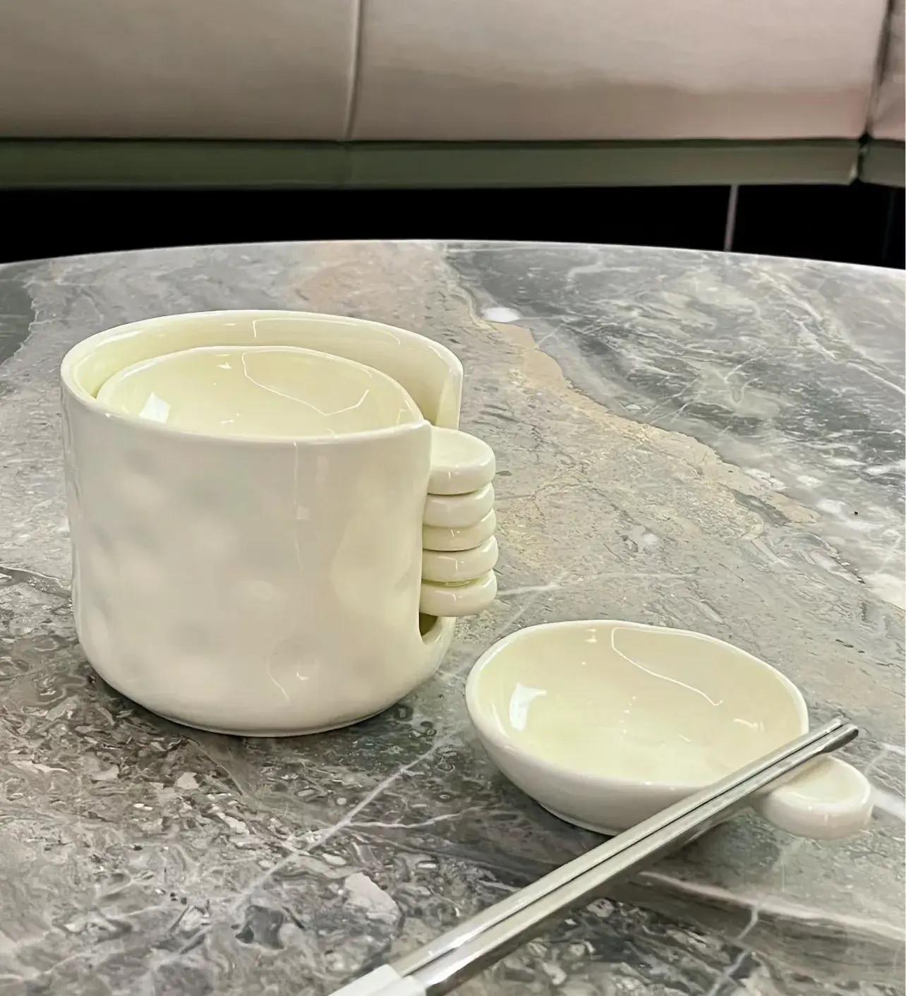 手柄不僅能解決手指蘸料的問題,還能充當筷託,有專門設計過的,放不鏽鋼筷子也不成問題。