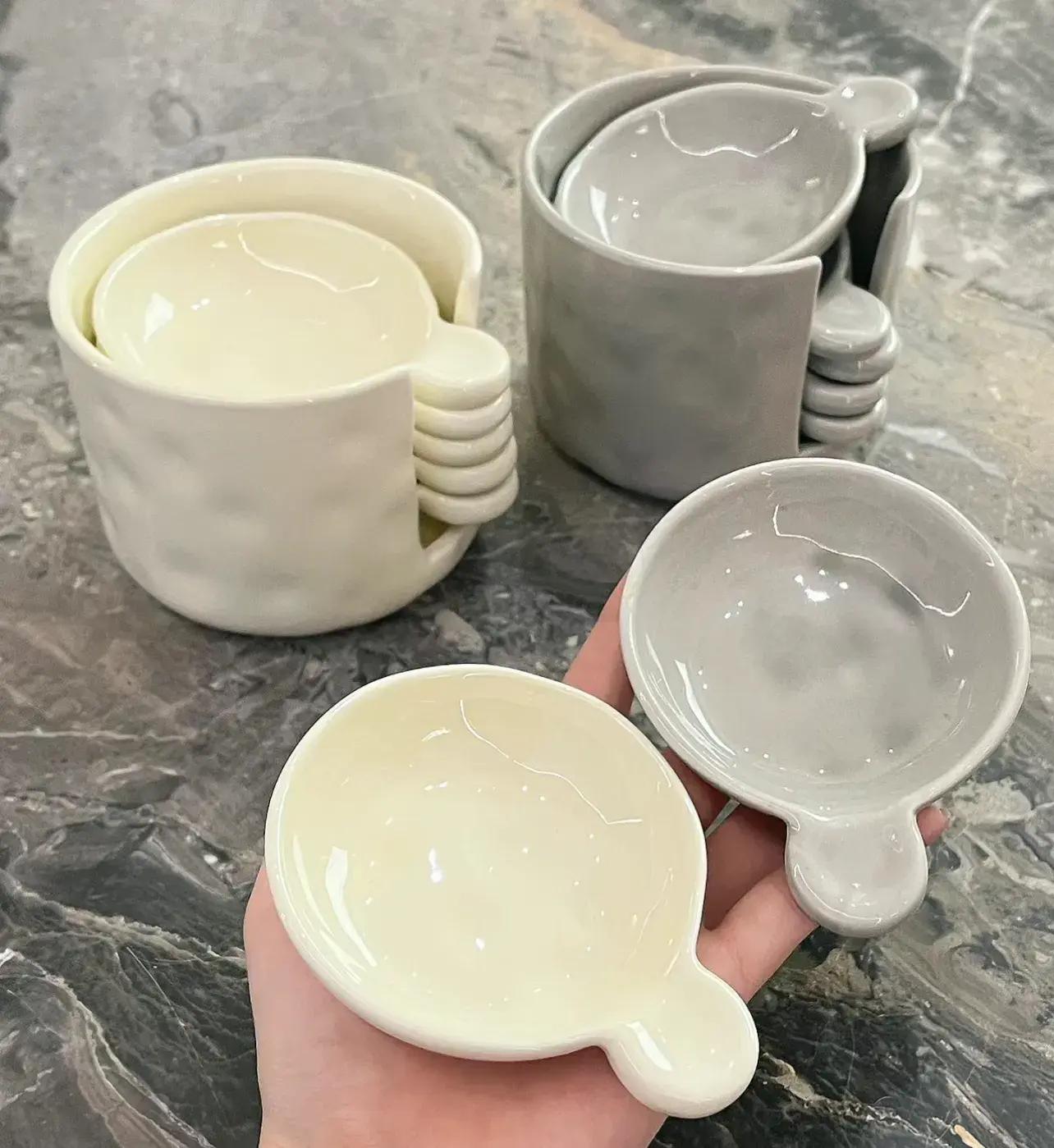 以前的蘸料碟,都是大家熟悉的那個樣式:沒有把手,端着容易把手指蘸進去。