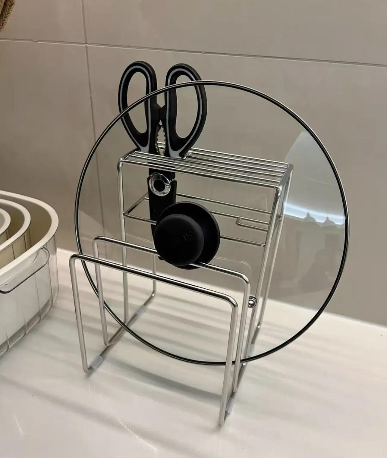 況且,它還是不鏽鋼的,耐造、環保;它還有着很合理的分區,無論大小刀均能收納,還能順帶收納個菜板、鍋蓋也穩穩的。