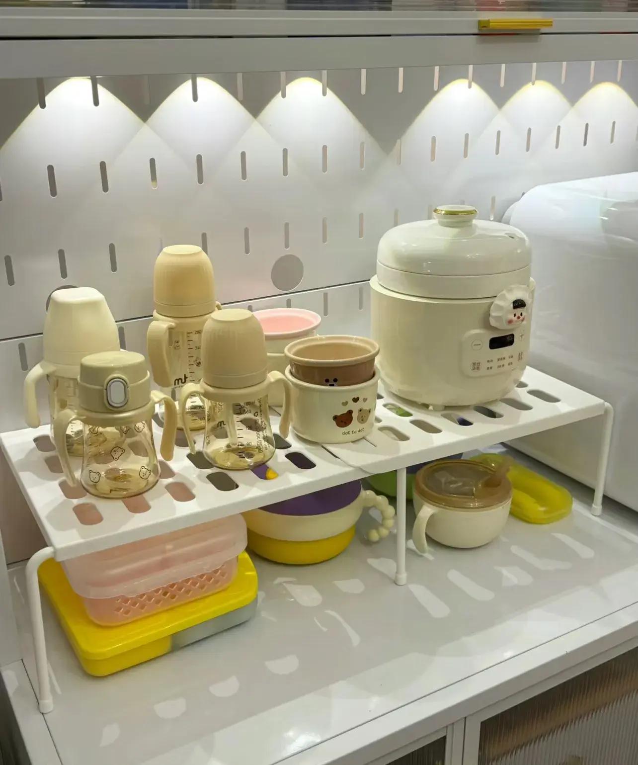 居然,比想象的還要合適一點,基本上把它用的所有東西,包括輔食鍋、餐具、奶瓶……都歸納至一處了。